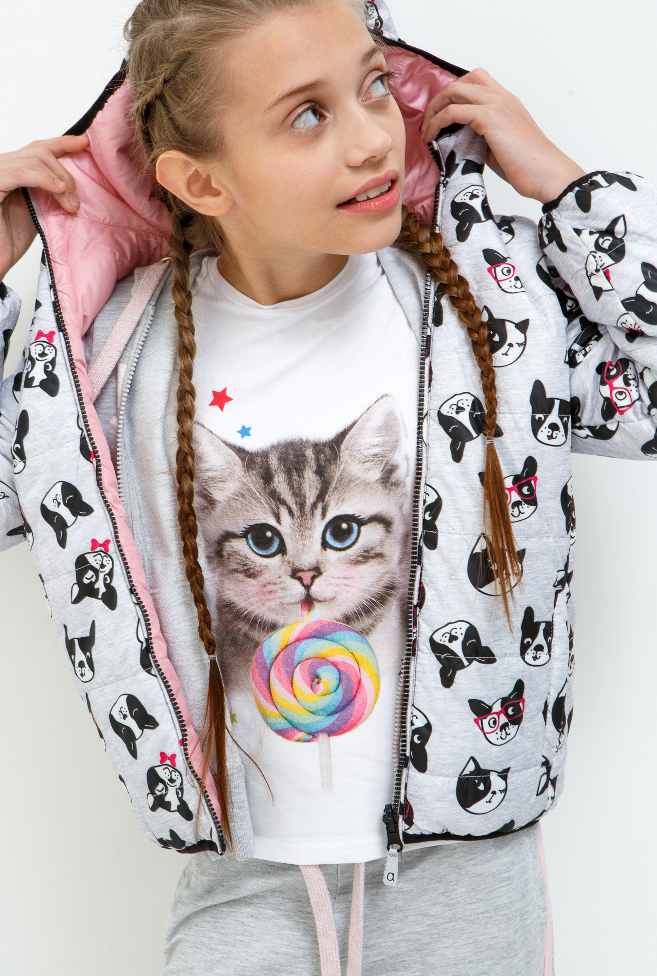 20210130126 Куртка двухсторонняя для девочек Ples серый 100%ПЭ серый 158 1000,00